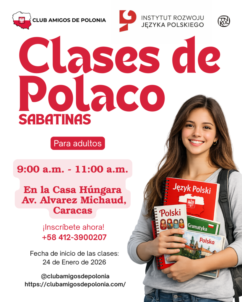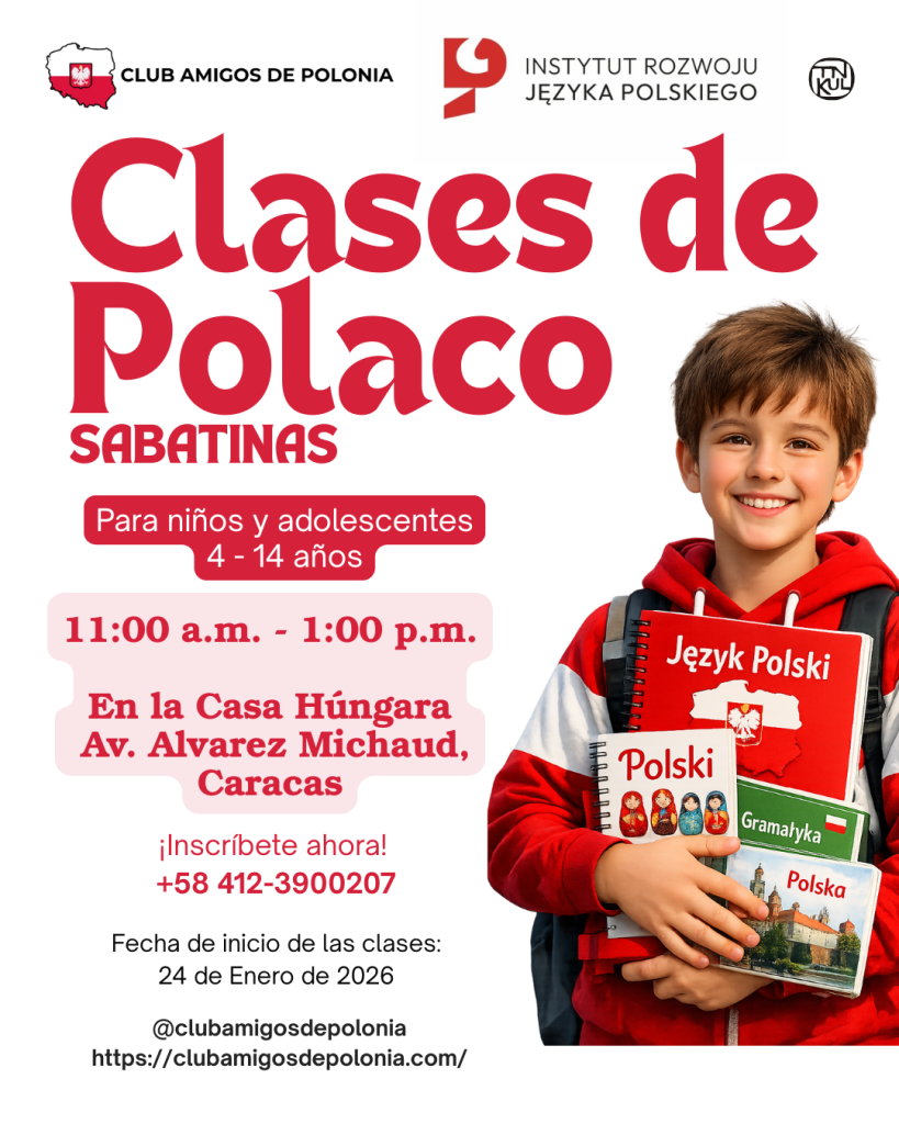 Para aprender polaco es importante no detenerse, por eso anunciamos que continuamos con nuestros cursos de polaco para niños, adolescentes y adultos, recordándoles que son cursos totalmente gratuitos, en los siguientes horarios: En la sede de la UCAB los días lunes de 1 a 3pm (adultos) En la Embajada de Polonia los días jueves de…